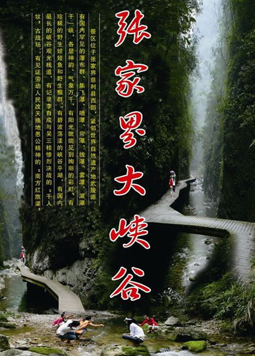 早7-8點左右市區(qū)定點集合點集合,游覽【張家界大峽谷】峽谷間是一條清幽的小溪,沿溪邊是用木板搭建的游道, 張家界大峽谷峽谷內(nèi)不僅有傳統(tǒng)的秀美自然風光,還云集有三朝數(shù)代的歷史人文景觀,如記錄李自成與吳三桂慘烈決戰(zhàn)的“千人墳”古戰(zhàn)場,反映湘西歷史特色的土匪洞及見證解放初期湘西人民靠天勞作在絕壁間挖鑿的“南方紅旗渠”等。 |